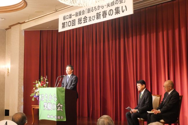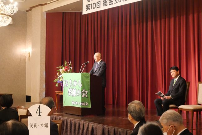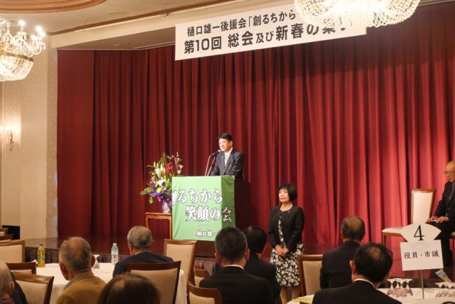 「総会」では、来賓の皆様方からご祝辞や7年度事業報告と8年度事業計画について、大きな拍手でご承認いただくとともに、「創るちから・笑顔の会」は、引き続き樋口市長を強力にサポートすることを確認しました。